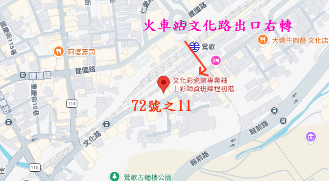新北市 鶯歌區 文化路72號之11 鶯歌火車站文化路前站出來,沿著文化路走一分鐘就到達囉!